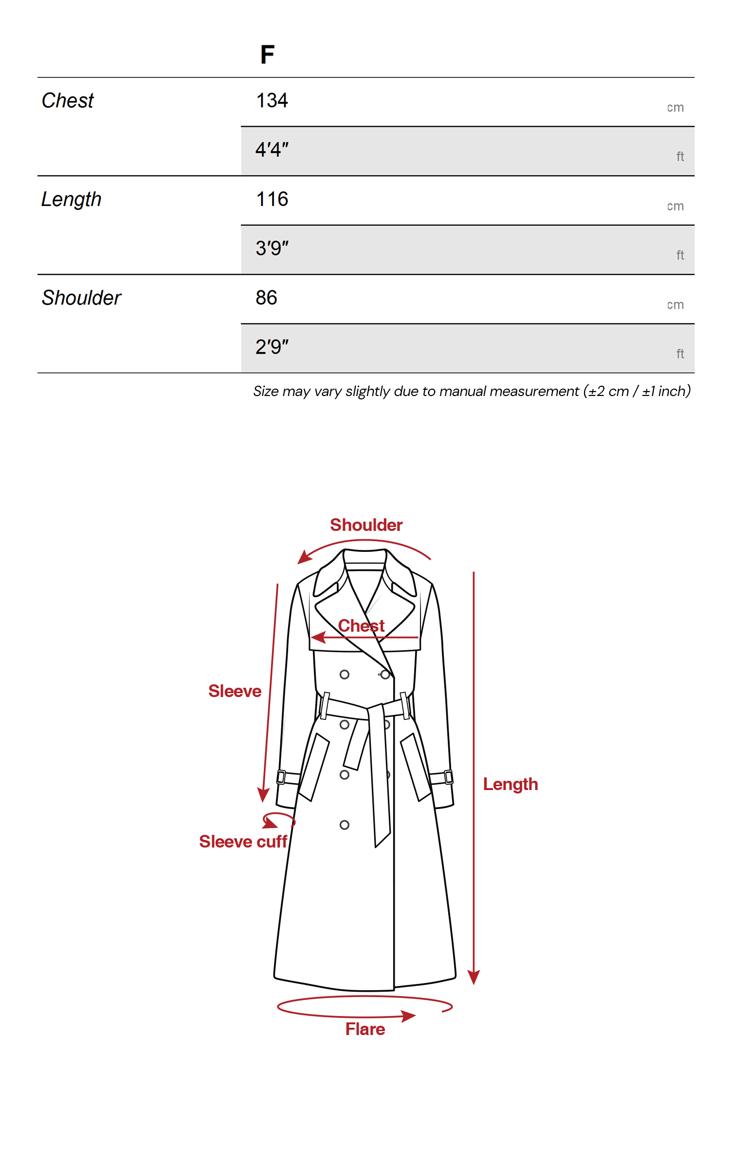 - モデルはサイズFを着用しています。