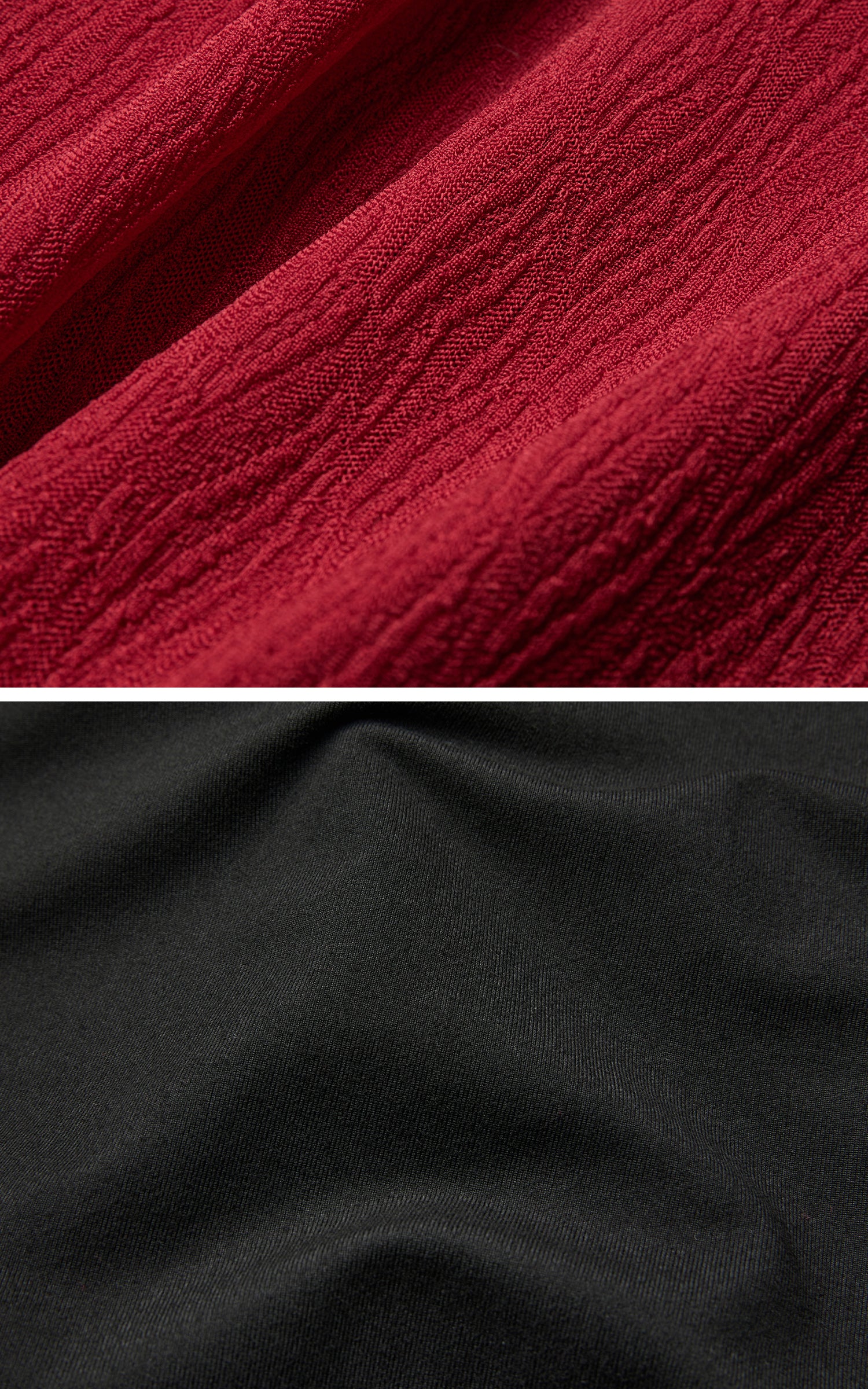 Fabric B: 65% acetate, 30% polyester, 5% spandex