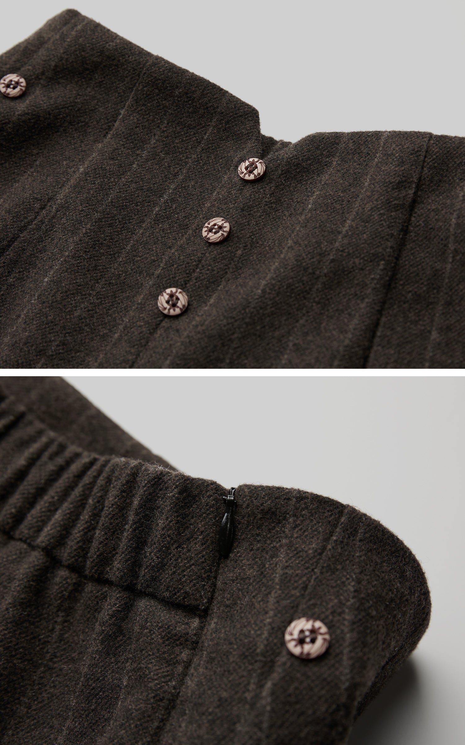 Fabric: 69% polyester, 23% wool, 6% rayon, 2% spandex