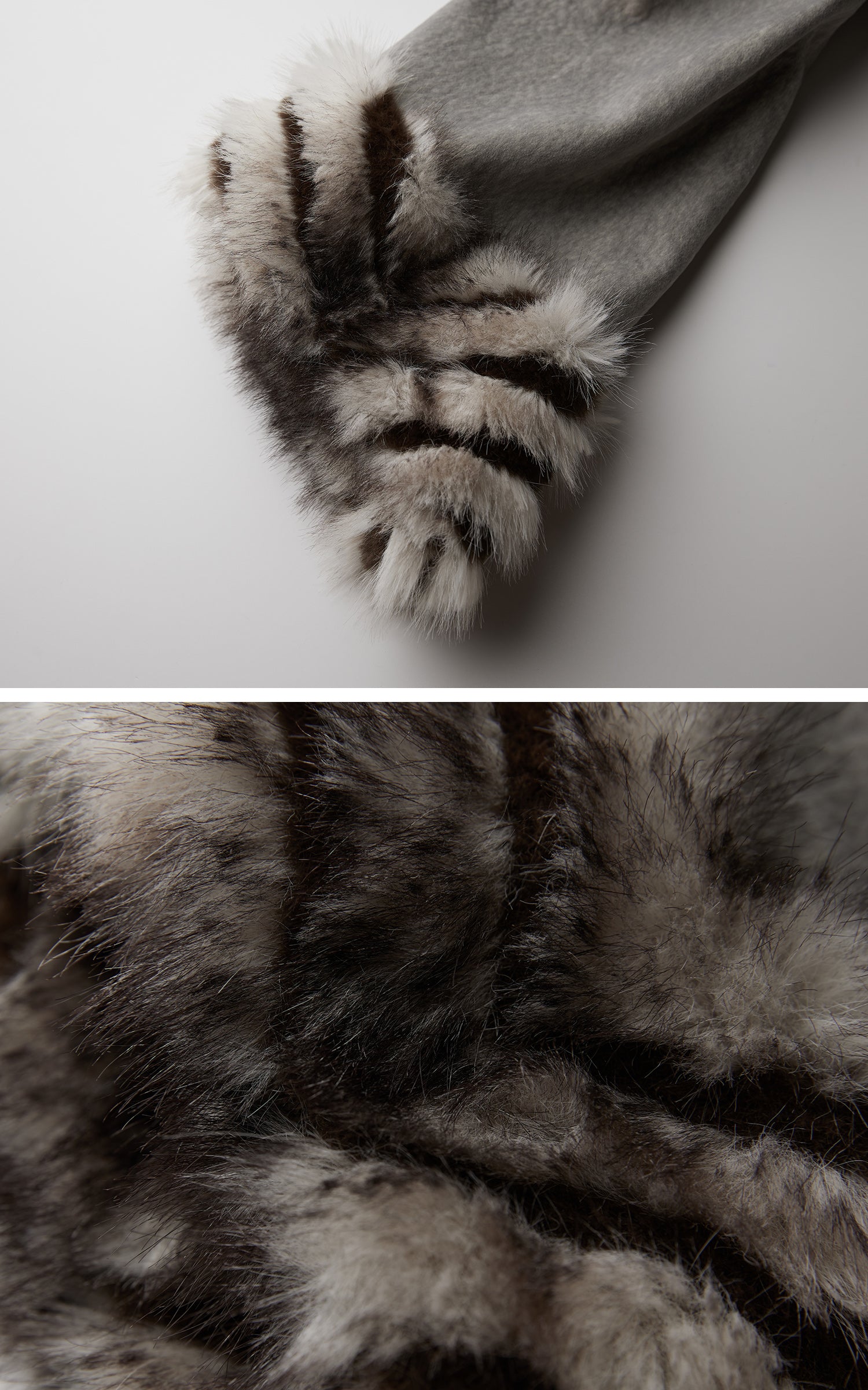 A long coat shaped with sculptural clarity and a muted, monolithic presence. The textured wool-finish fabric forms a structured silhouette that narrows at the waist before expanding into a grounded, architectural skirt line. Full-length button detailing draws the eye downward, while the sleeves end in contrasting faux-fur cuffs that cut through the quiet palette with a primal, tactile energy. Internally lined for comfort and movement, the piece carries a solemn, ritualistic elegance—balanced between restraint and ornament, austerity and wildness.